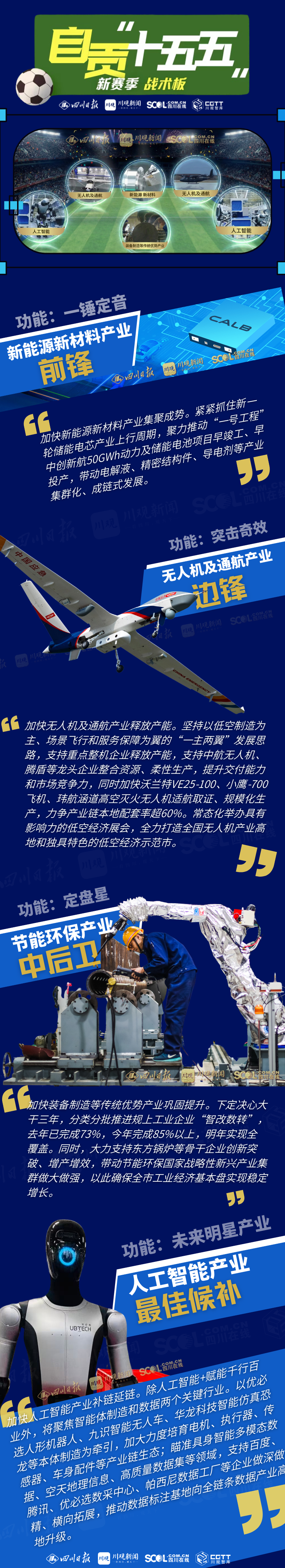 同时,我们大力支持东方锅炉等骨干企业创新突破、增产增效,带动节能环保国家级战略性新兴产业集群做大做强,以此来确保全市工业经济基本盘实现稳定增长。“川超”总决赛阶段已经开始了,我们从足球队这个维度来看产业,节能环保产业是中后卫,也是定盘星。