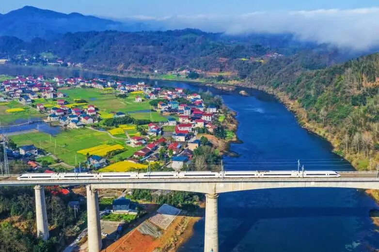 动车组穿行在湘粤大地的春光里