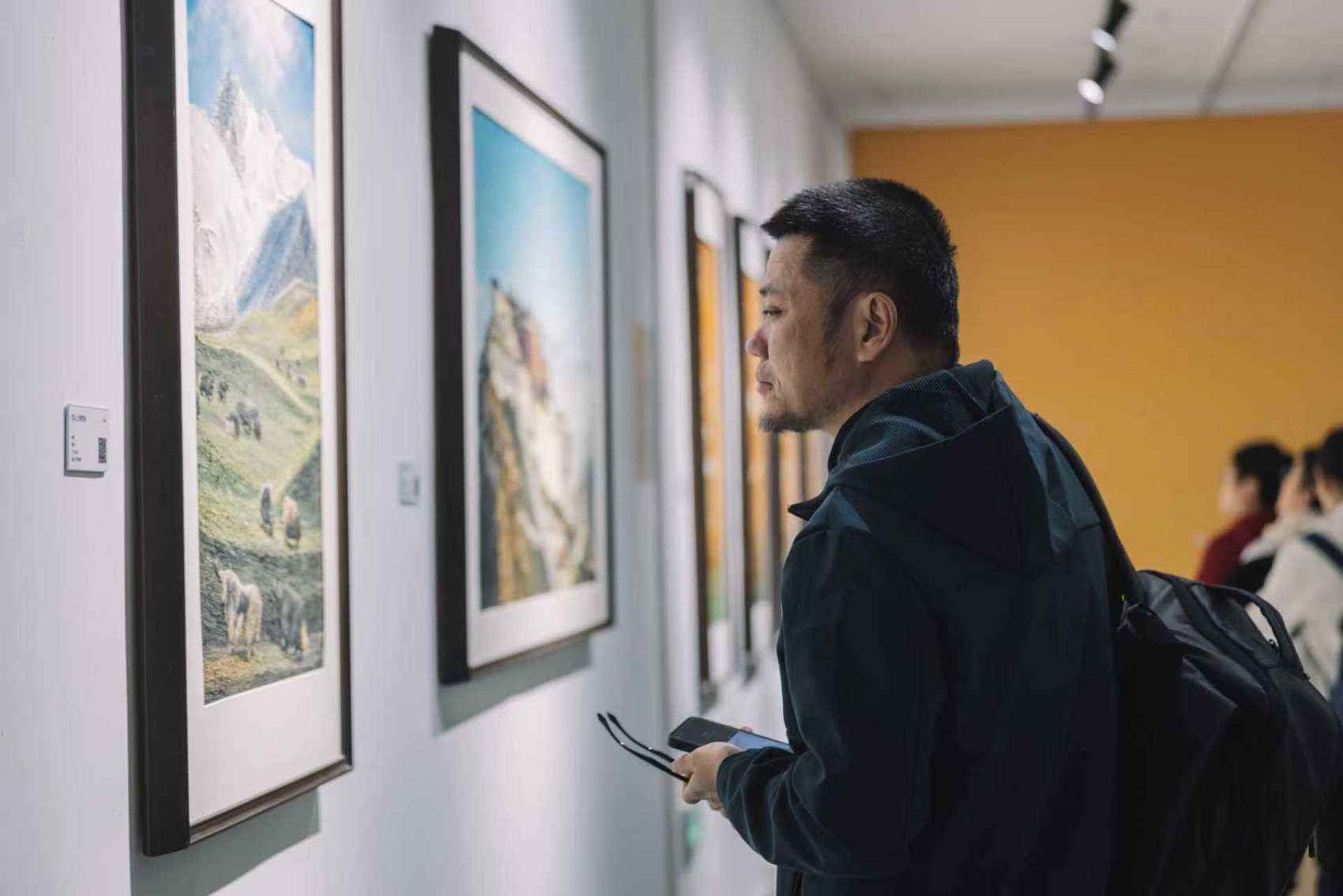 游客观看融合创新画作。