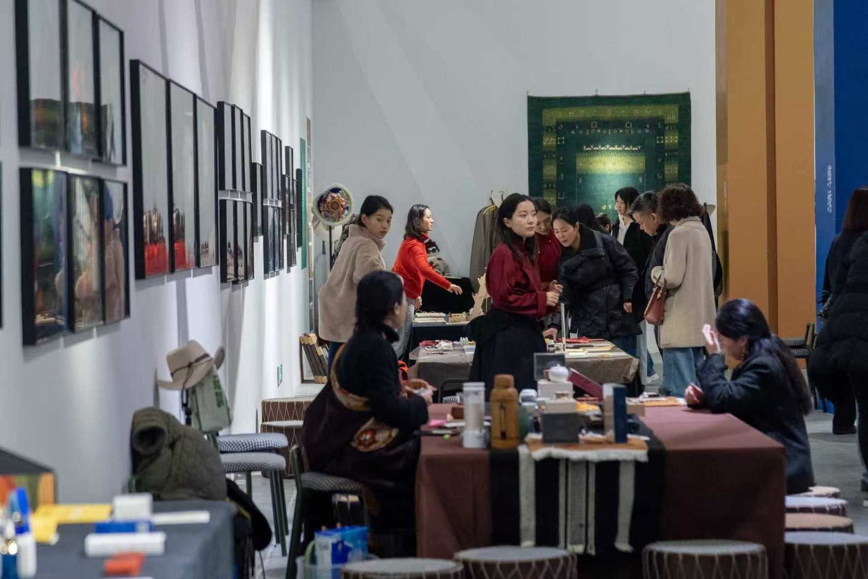 百余匹骏马的形象,通过唐卡、瓷艺缂丝、瓯塑等20余种非遗工艺,将“六合同风”的文化内涵凝练于画板的方寸之间。记者注意到,一些画作是唐卡与瓷绘技艺的融合,一些画作中兼具唐卡与浙江温州瓯塑技艺的神韵。