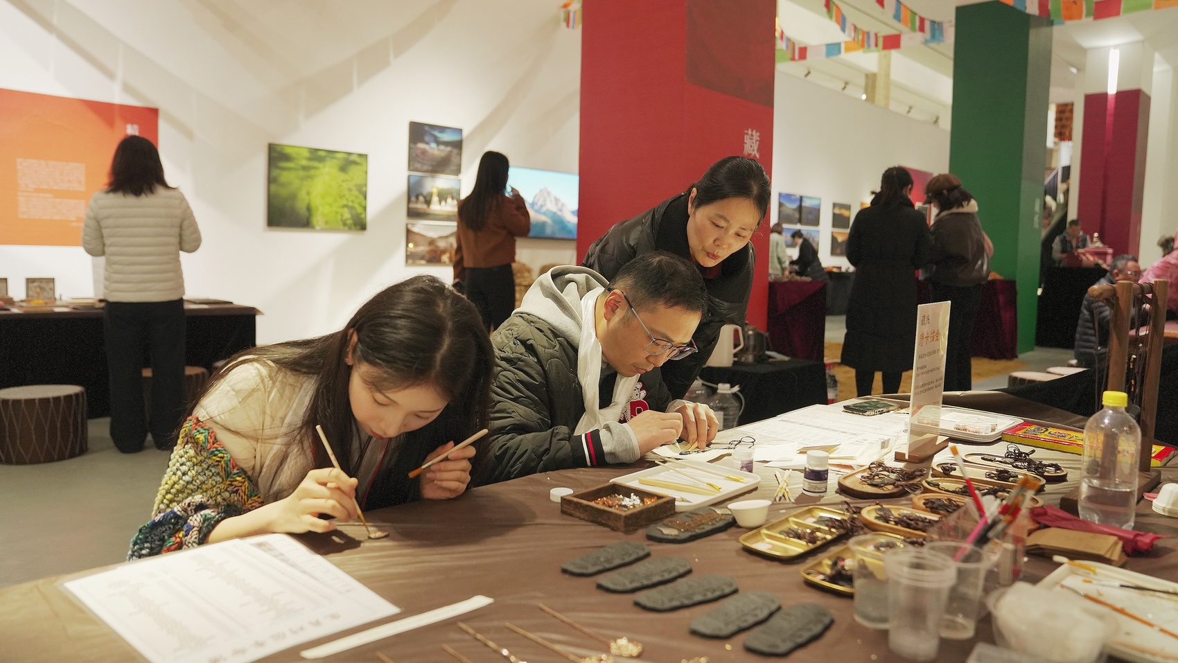 非遗“活化”是壤塘推动各民族交往交流交融的另一重要方式。此次展览现场,还有不少观众被非遗体验区吸引。在藏纸拓印体验区,孩子们跟着传承人学习用狼毒草制作的藏纸拓印马纹;藏香珠制作区,市民们亲手混合草药,感受“可以佩戴的藏药”……