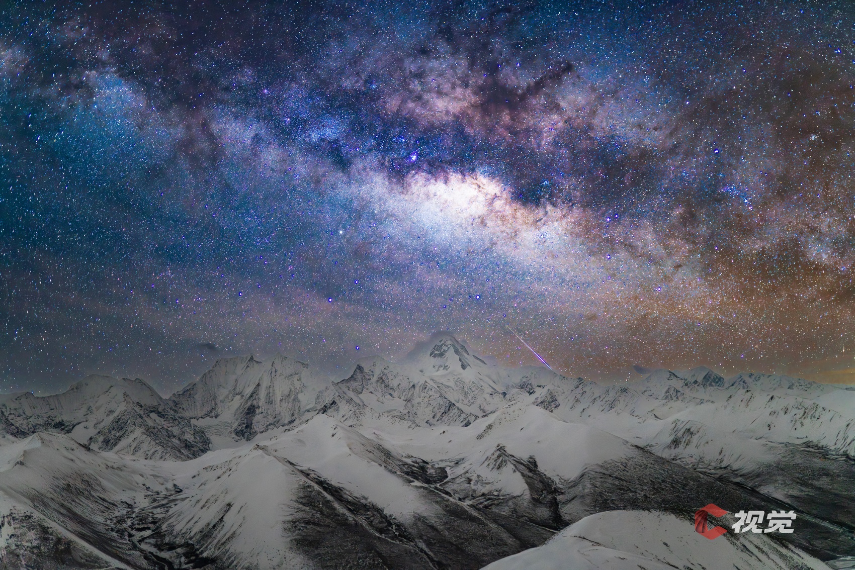 皑皑雪山搭配梦幻银河,每一帧都像画一样。