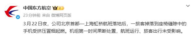 23日,中国东方航空官方微博发布通报:
