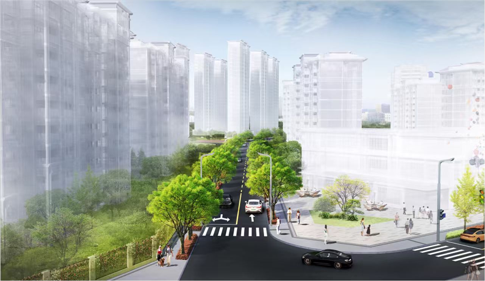 建设内容主要包括道路工程和给水、排水、照明、电力、燃气、交安、绿化等附属工程。