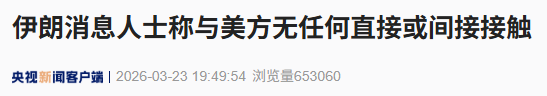 据央视新闻客户端报道,对于美国总统特朗普3月23日称“美国和伊朗进行了非常好且有成效的会谈”,总台记者当天从伊朗消息人士处获悉,“伊朗与美国没有直接沟通,也没有通过斡旋方进行沟通”。