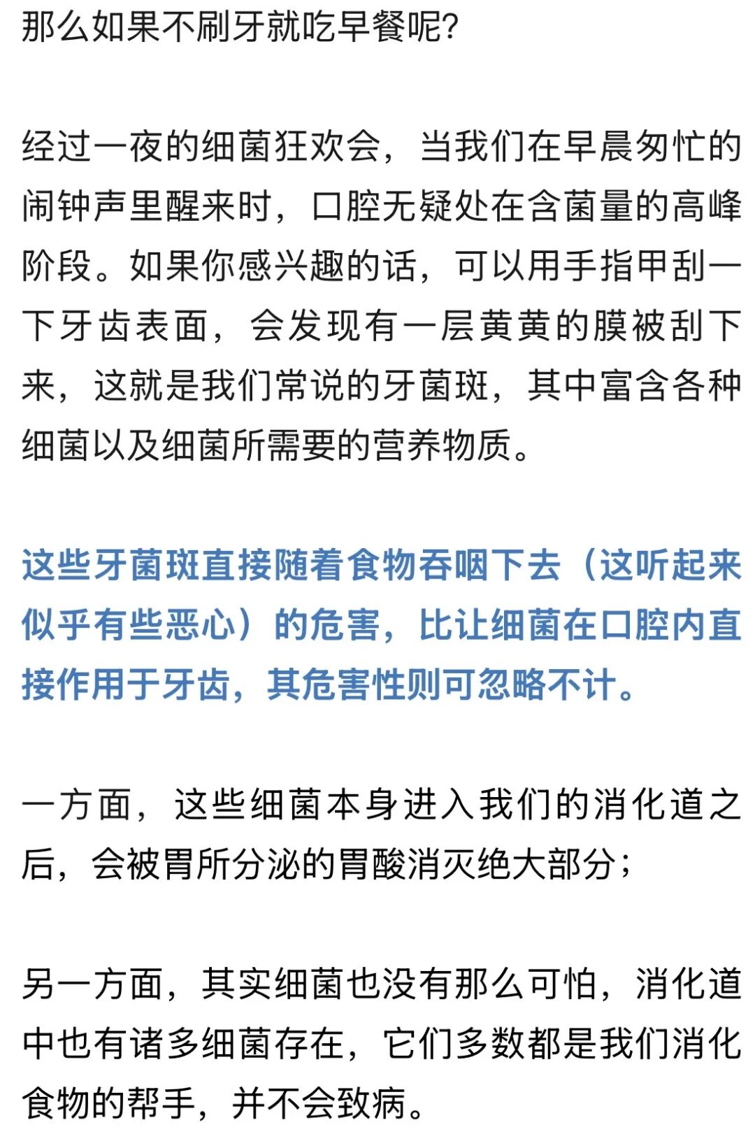 早餐前刷牙:吞下细菌,没事!
