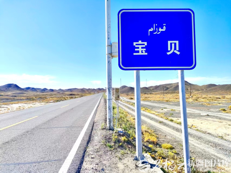 沿着S201线,从克拉玛依向托里县方向行驶30多公里,路边有一块路牌写着“宝贝”——这可不是昵称,而是托里县一个真实存在的地方。
