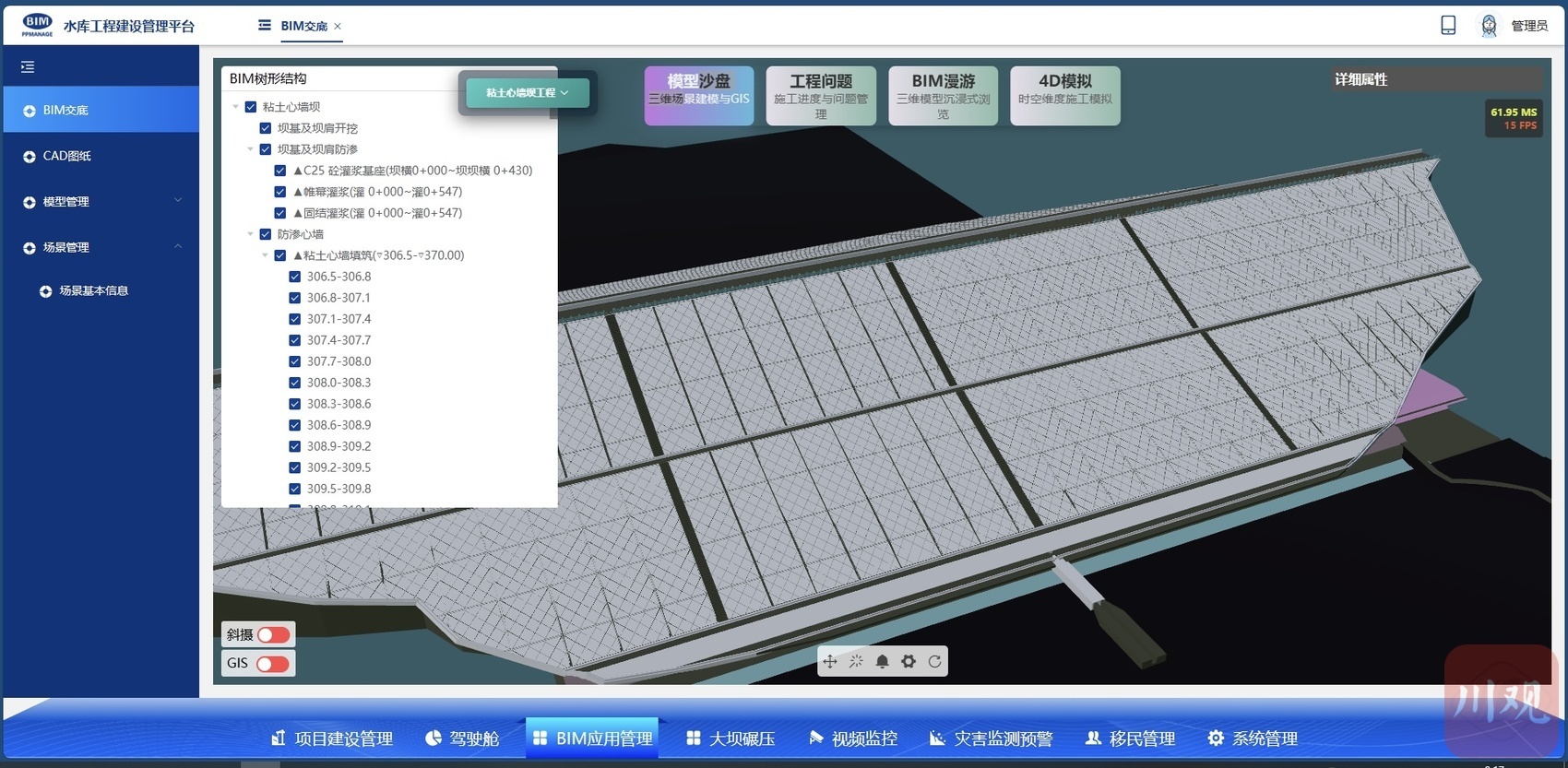 “数字孪生系统的核心价值,在于实现工程全生命周期的精准管控、高效运维。”工程相关负责人以该系统在大坝碾压环节的应用举例:施工人员在压路机上安装GPS定位与数据监测系统,可实时精准捕捉压路机的碾压压力、行驶速度、碾压次数等参数,实现施工进程的实时监测和质量把控,大幅提升施工效率。相较传统人工监测模式,智能系统不仅能有效节约人力成本,更能减少人为检测的误差,进一步保障大坝的施工质量。