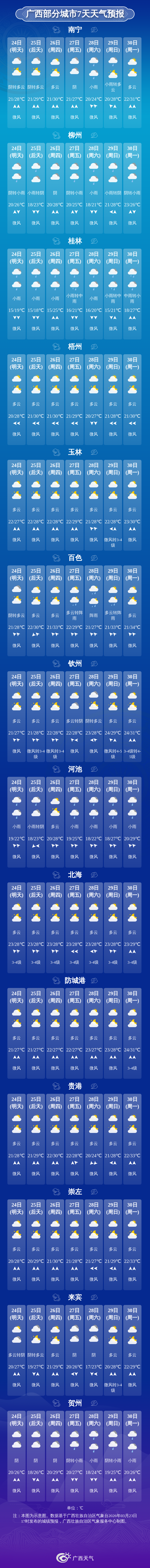 广西部分城市7天天气预报