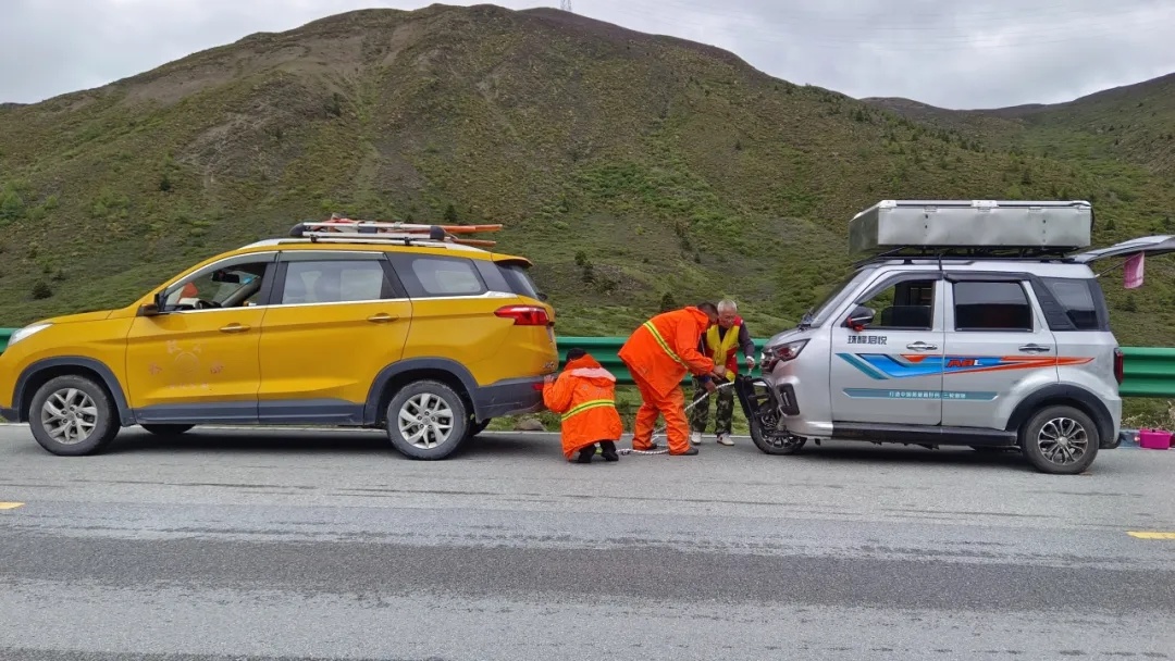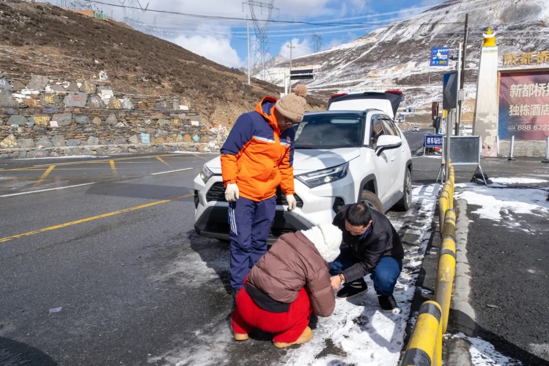 2023年夏天,折多山突降雷雨。一辆自驾游轿车因故障抛锚,停在一处弯道,十分危险。王康洪和同事赶到现场,设置警示、排查故障。一番检查后,确认车辆无法当场修复。更棘手的是,驾车女司机因紧张过度,情绪难以平复,不敢再开。“我来开,送你们下山。”王康洪没有犹豫。他握紧方向盘,在湿滑的山路上谨慎行驶三十多公里,将一家人安全送至山下的修车厂。临别时他留下电话:“车修好了随时联系。”这个号码,从此成了跨越山海的牵挂。