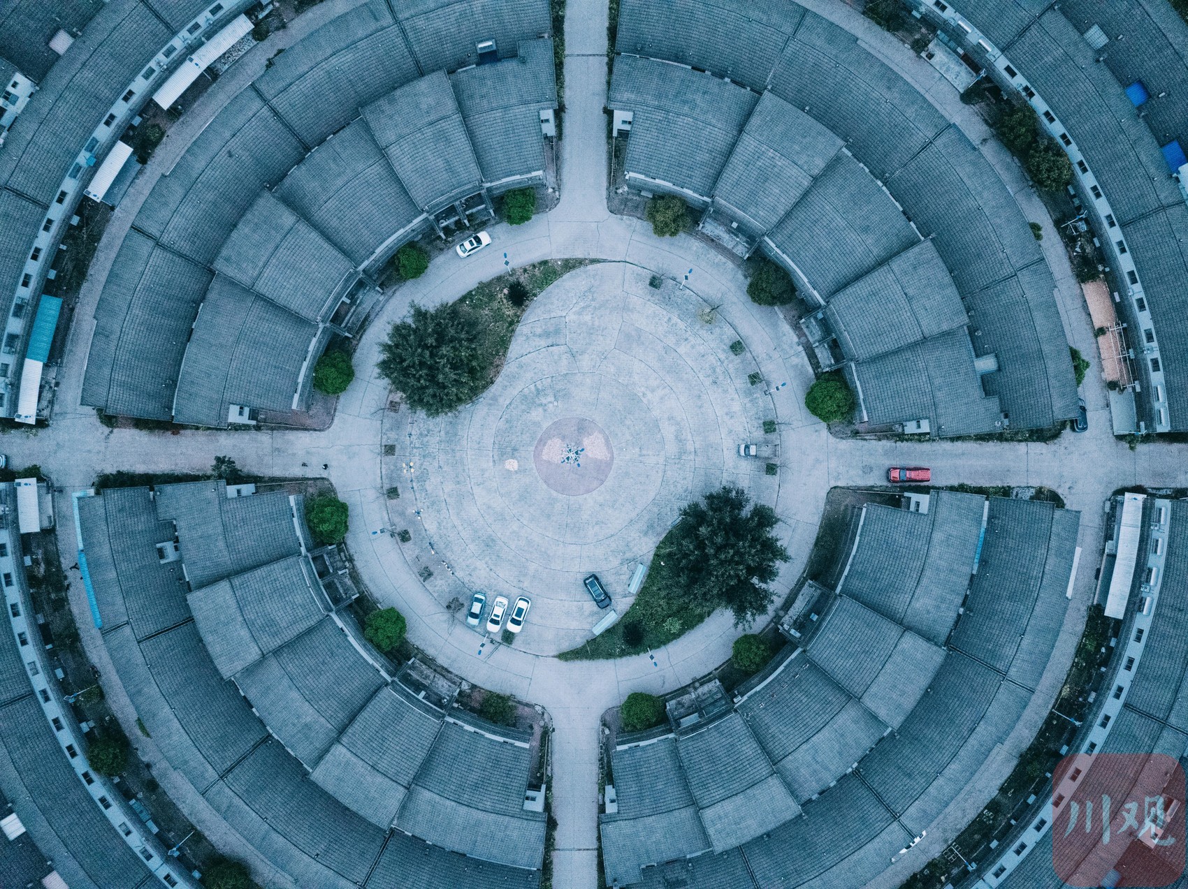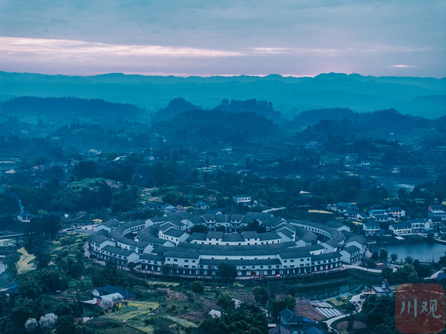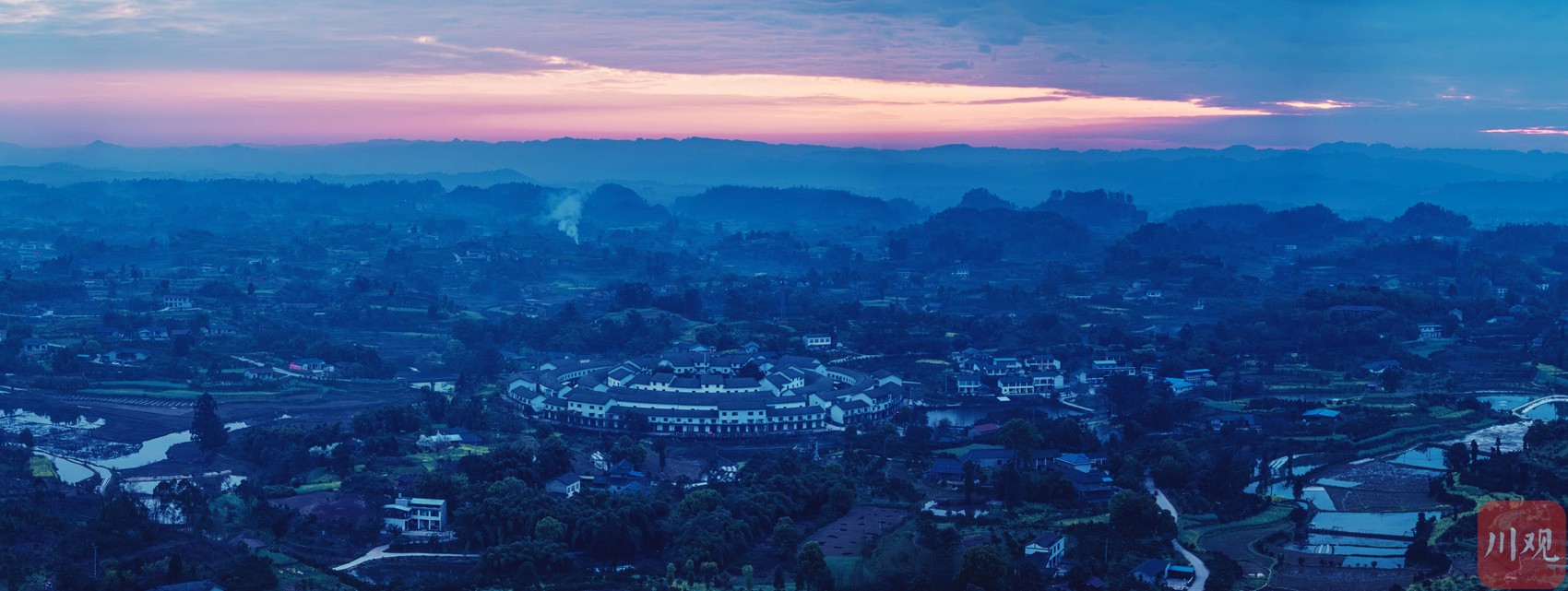 晨曦微洒,薄雾轻漫,3月22日,自贡市荣县留佳镇的凤龙新村在晨光中缓缓苏醒。独具客家围楼风格的新村建筑,以圆形为中心层层向外舒展,环环相连,整体造型酷似电影《大鱼海棠》中的经典场景,古朴雅致又充满梦幻意境。