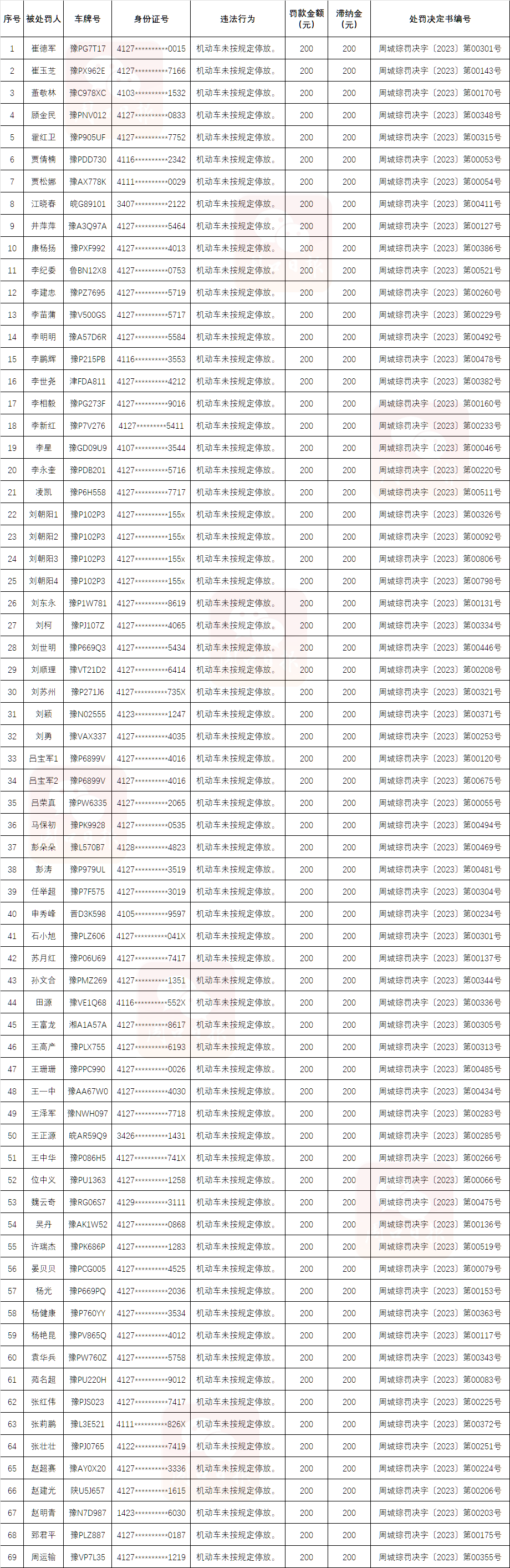 附件:违法停车行为人名单