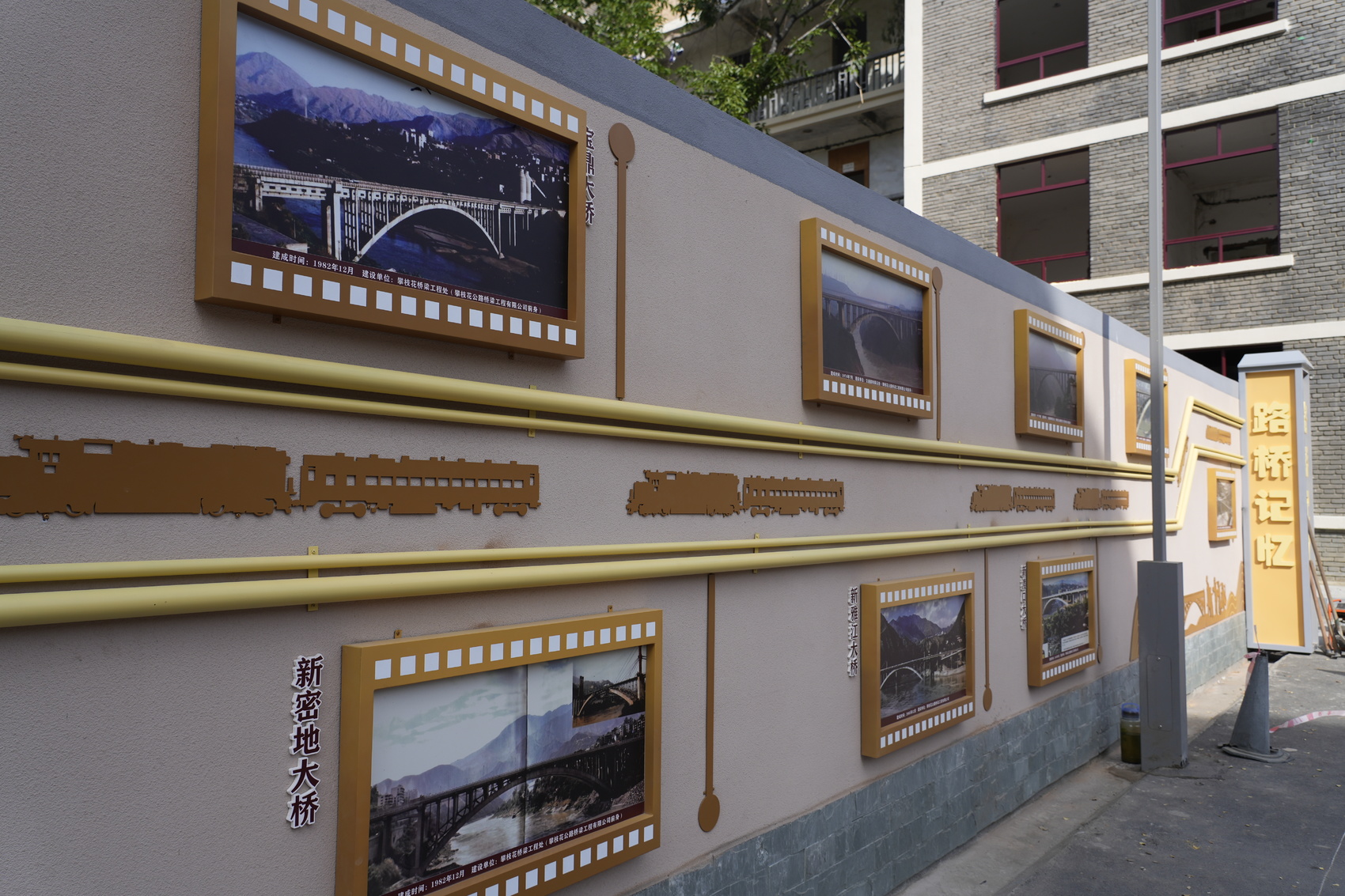 作为原攀枝花交通机械化工程公司的家属区,这里的老人几乎都有一段架桥筑路的三线故事。为留存这份记忆,仁和区住建局和大河中路街道办事处工作人员征集小区历史资料20余件,走访了50多位老居民,在小区打造“路桥记忆”文化墙,用老照片与铁路剪影,定格老职工建设攀枝花的峥嵘岁月。