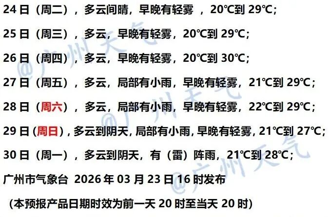 据@广州天气 23日消息