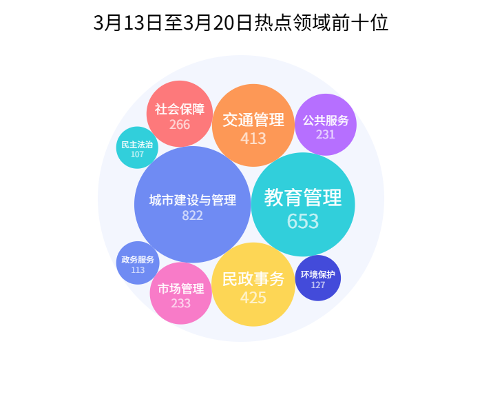 网民留言领域前十分别为城市建设与管理822件、教育管理653件、民政事务425件、交通管理413件、社会保障266件、市场管理233件、公共服务231件、环境保护127件、政务服务113件、民主法治107件。