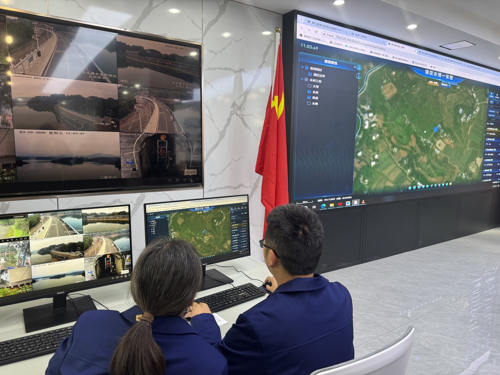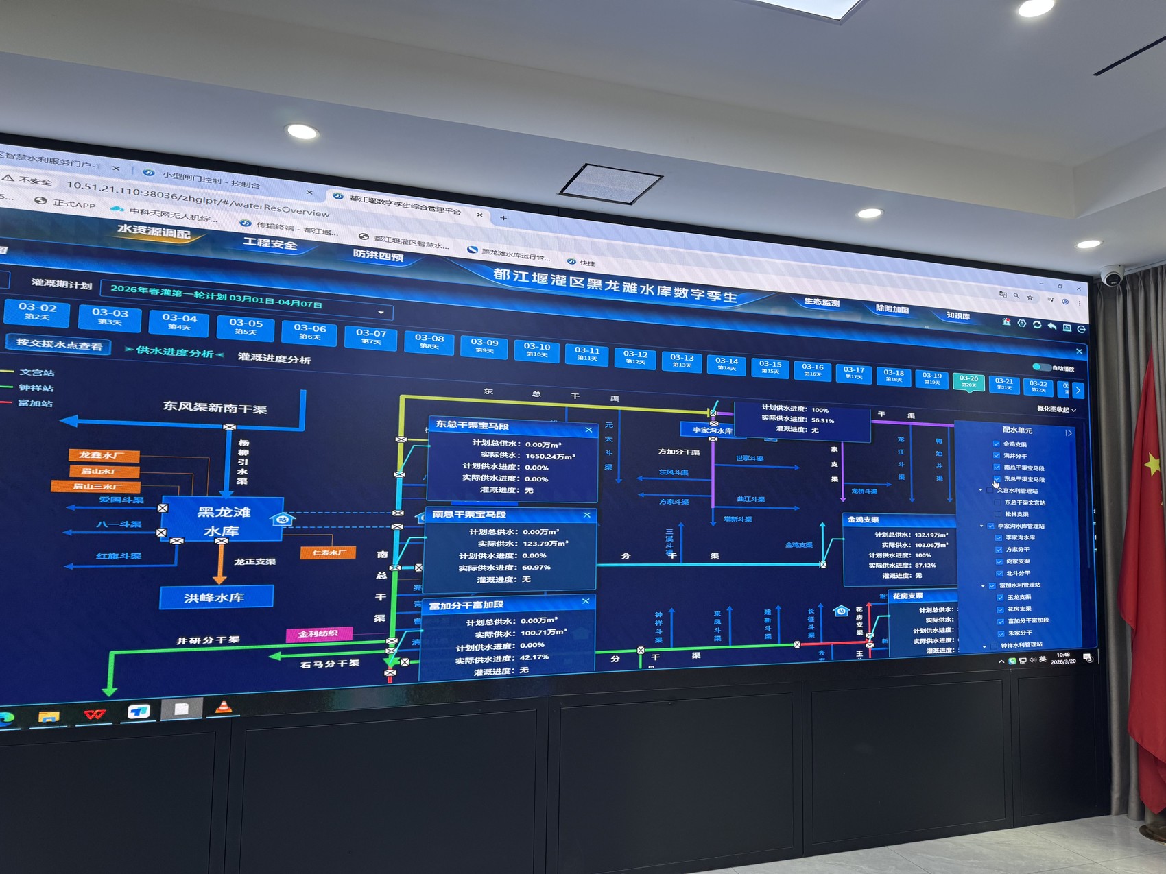 工作人员在数字孪生系统调度中心查看春灌情况。