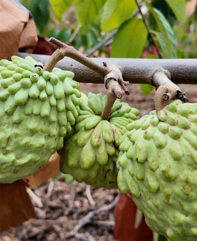 数据最有说服力:2025年基地年产释迦果50余吨,年产值120余万元,果子均价15元/斤。曾经的荒坡秃岭,如今一层层果园顺着山势铺开,变成了村民眼里的“金山银山”,一颗颗释迦果,成了企业增效、农民增收的“软黄金”。