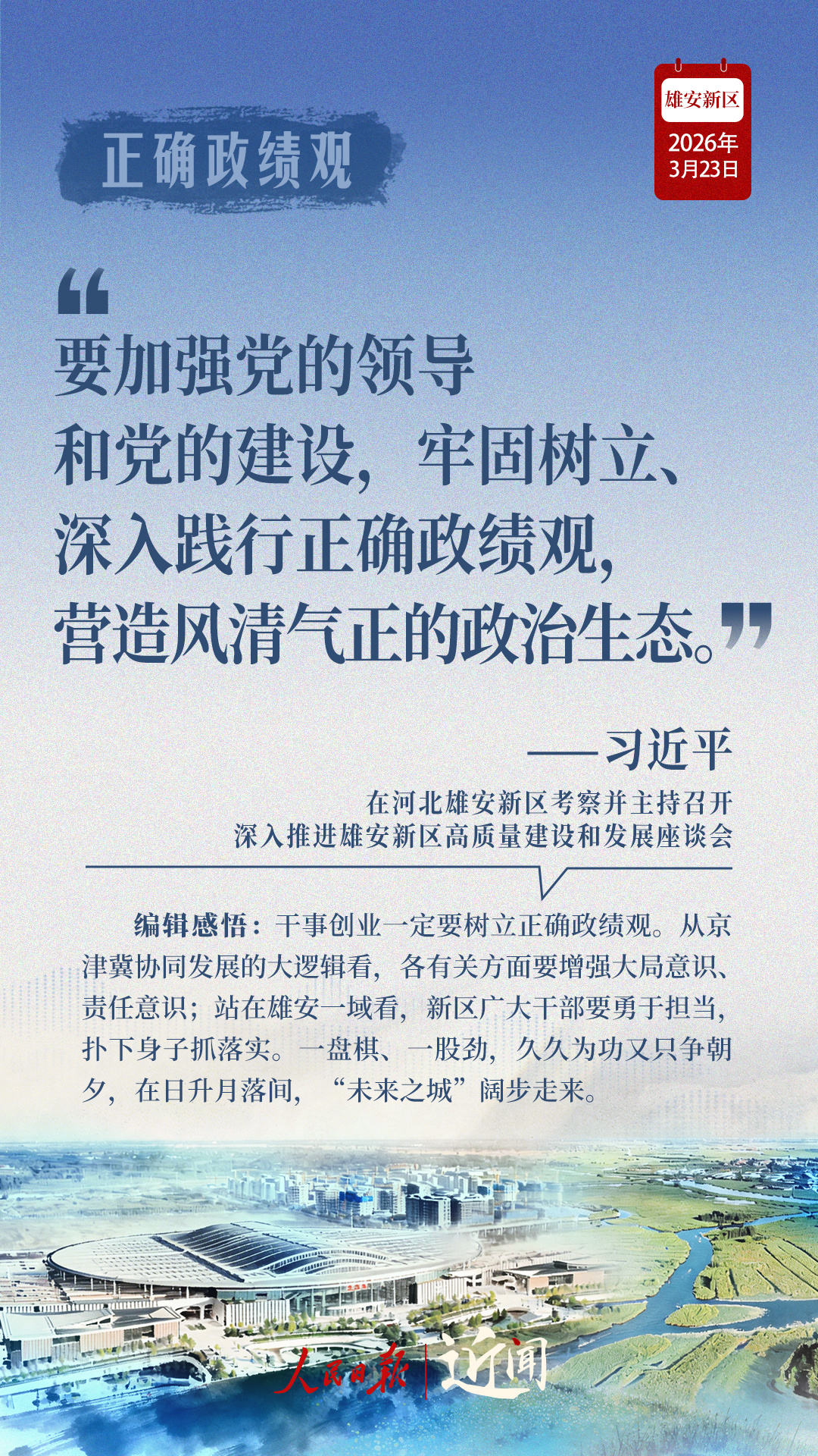 9年时间,从一块地到一张图,再到一座城,“党中央始终给予最大的希望”;从第一次到雄安时在安新县主持召开的一场小型座谈会,到高标准高质量推进雄安新区建设座谈会,再到深入推进雄安新区高质量建设和发展座谈会,一步一个脚印,刻印下现代化“未来之城”的拔节生长。