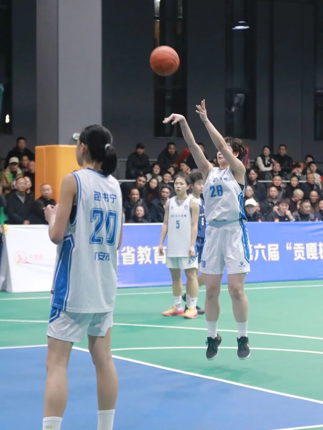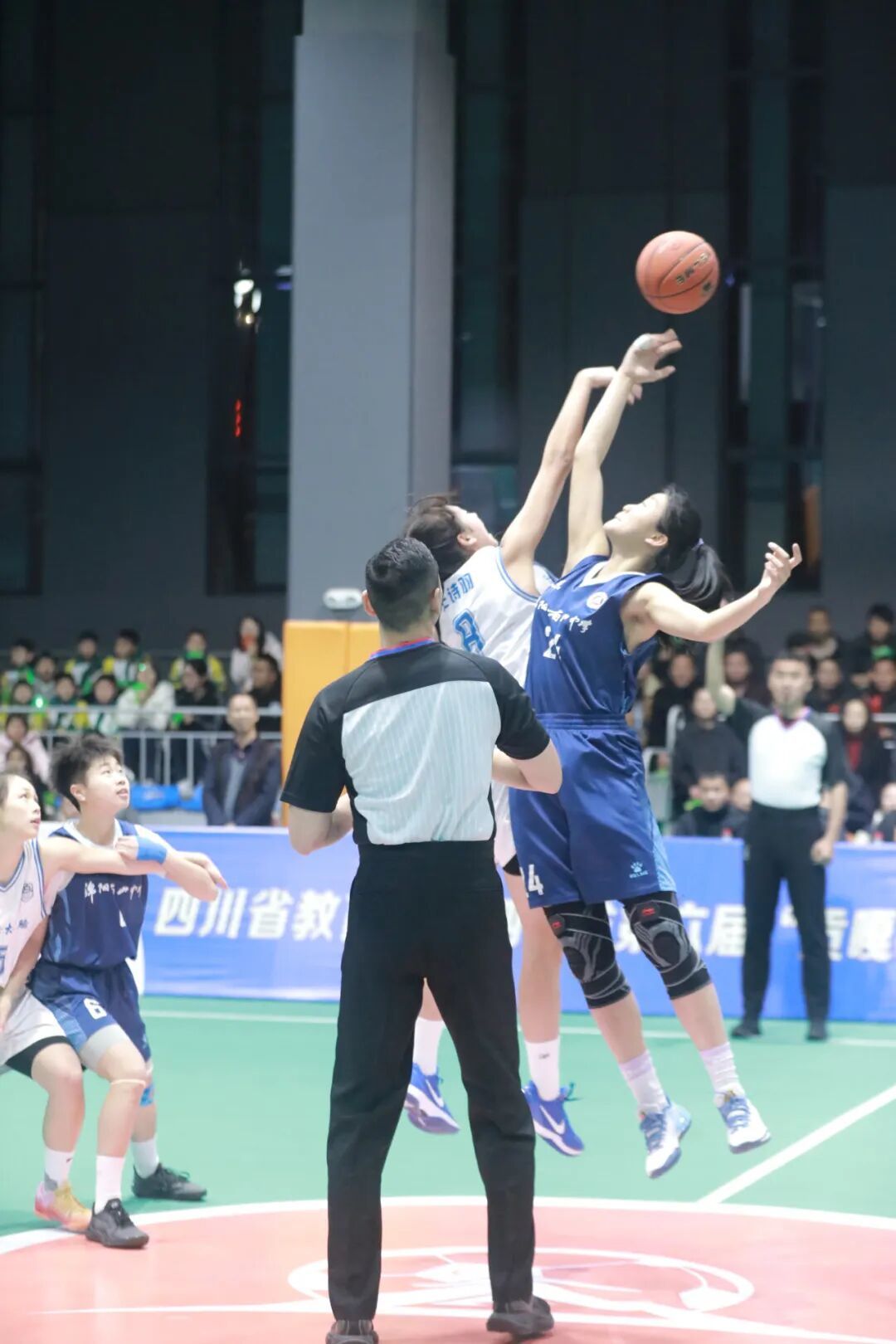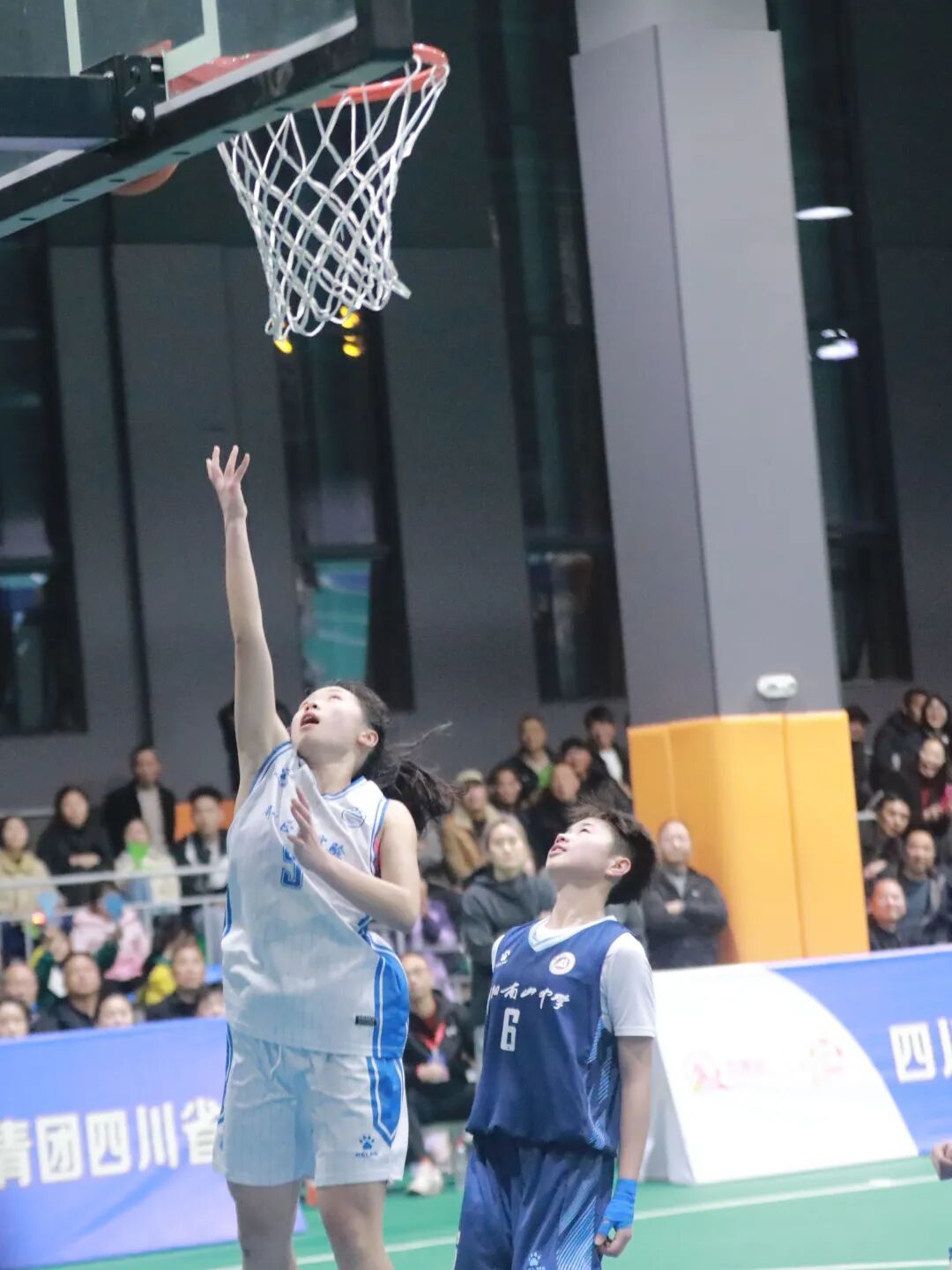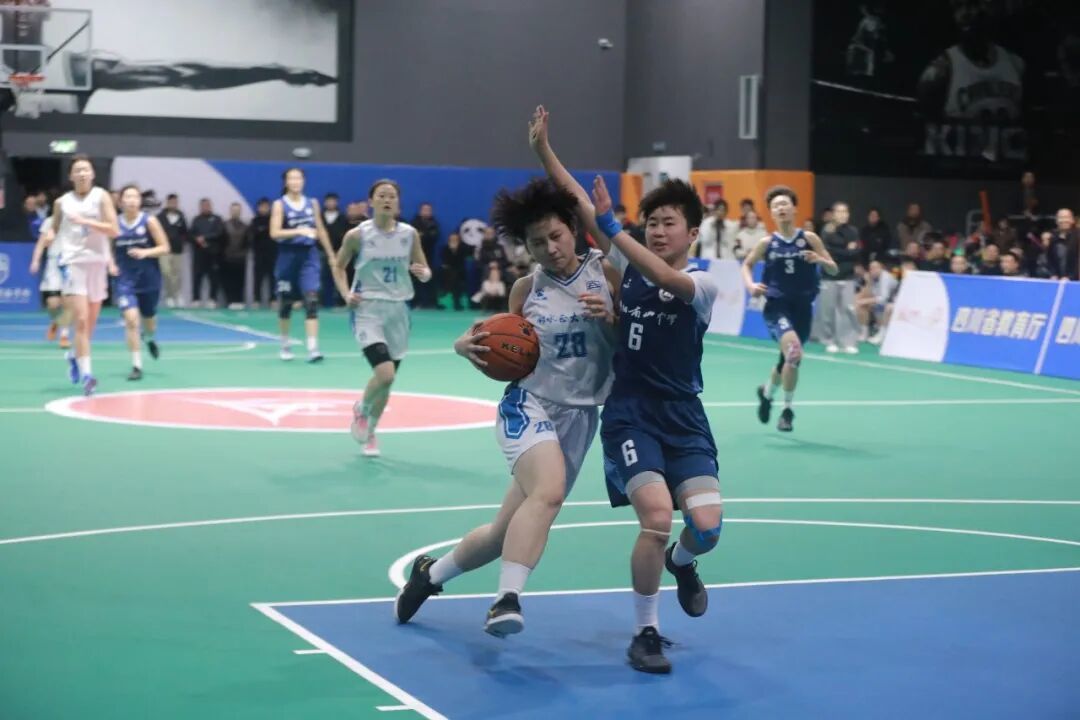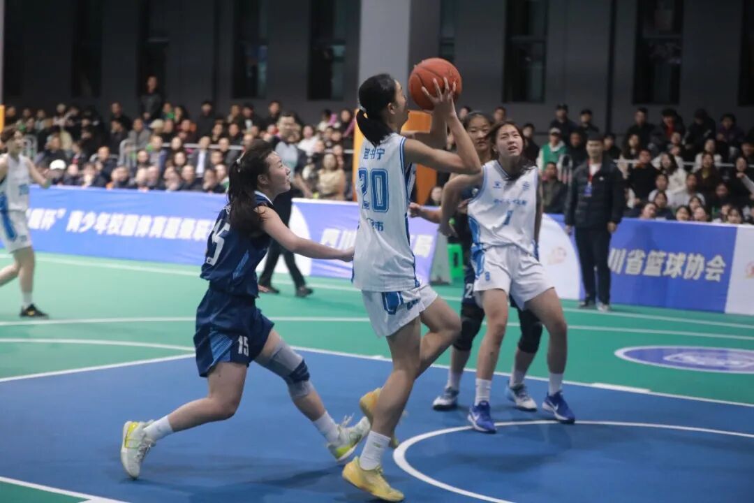 3月23日晚,邻水县第九中学校体育馆内灯光璀璨,人声鼎沸,四川省第六届“贡嘎杯”青少年校园体育联赛总决赛高中女子组季军争夺战在此激情开战。邻水正大实验学校女篮与绵阳南山中学女篮狭路相逢,一场激烈的篮球对决即将上演。