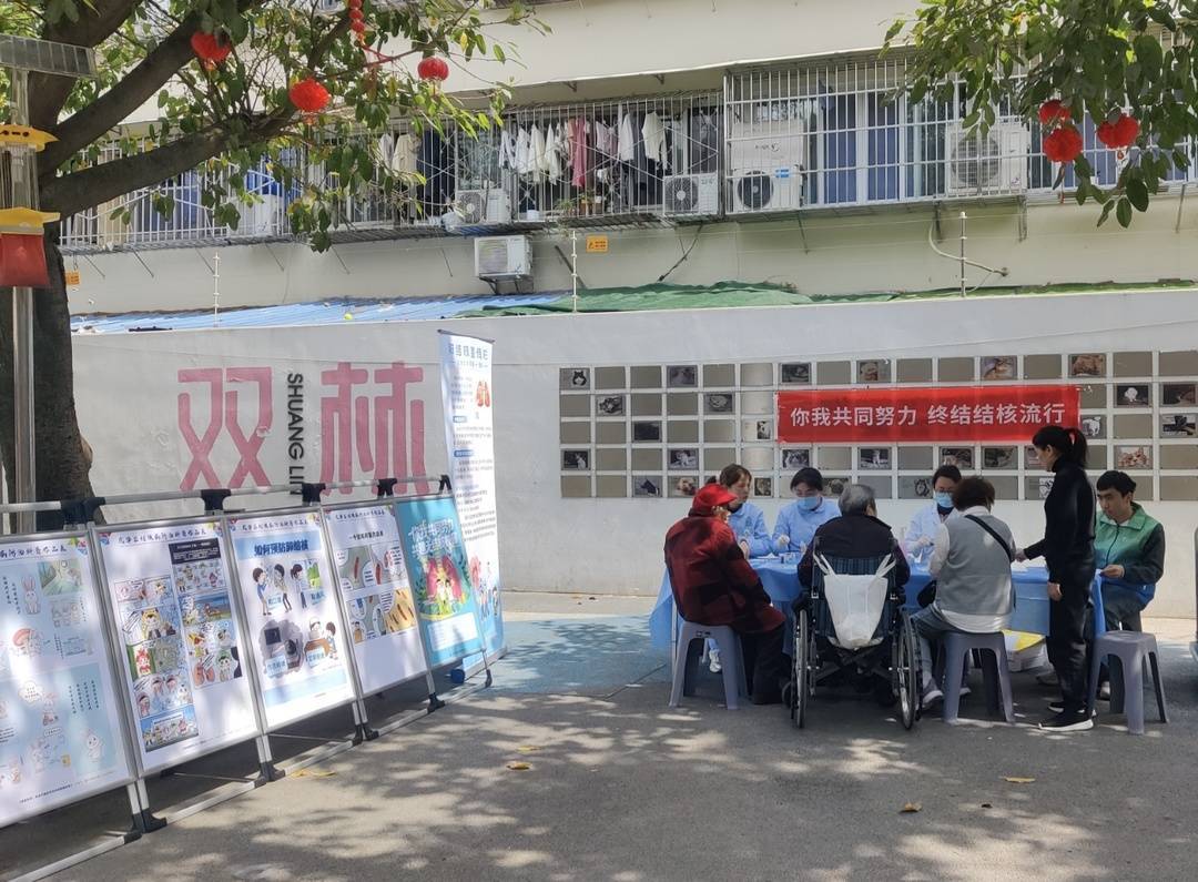 2026年3月24日是第31个“世界防治结核病日”,今年宣传主题为“全面行动,全力投入,全民参与,终结结核”。当天下午2点,成都市成华区双桥子社区卫生服务中心的医护人员走进双林社区小广场,搭起健康宣传阵地,用接地气的科普、贴心的指导,为辖区居民和流动人口送上专业的结核病防控知识,把基层医疗的健康守护落到群众身边。
