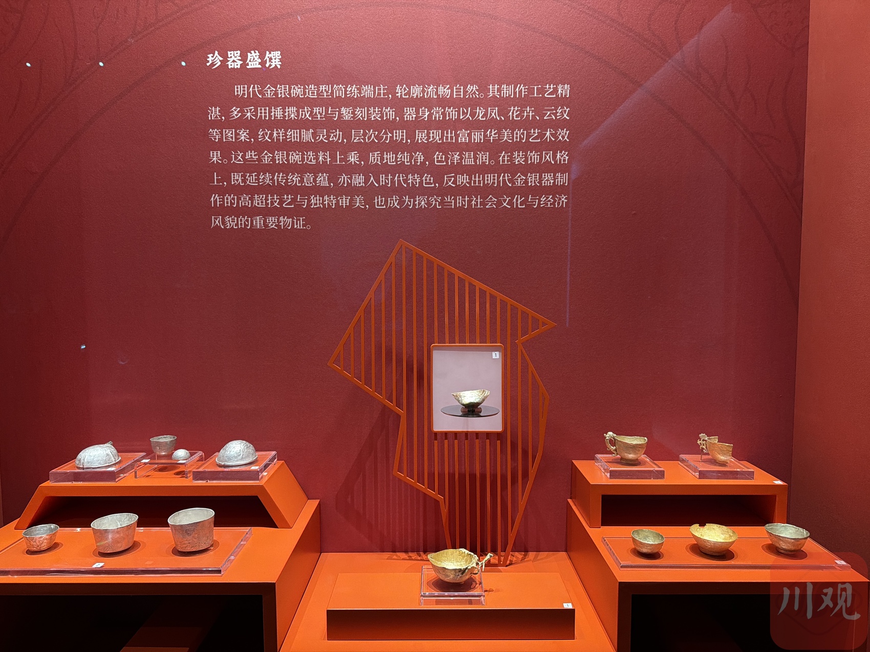 展陈突破传统柜展模式,运用镜面材质营造出交错光影,烘托这些江底珍宝的璀璨。3米高的巨型“银锭”装置艺术矗立展厅,数百枚金锭、银锭模型镶嵌而成的“金山银山”景观,视觉冲击力极强。