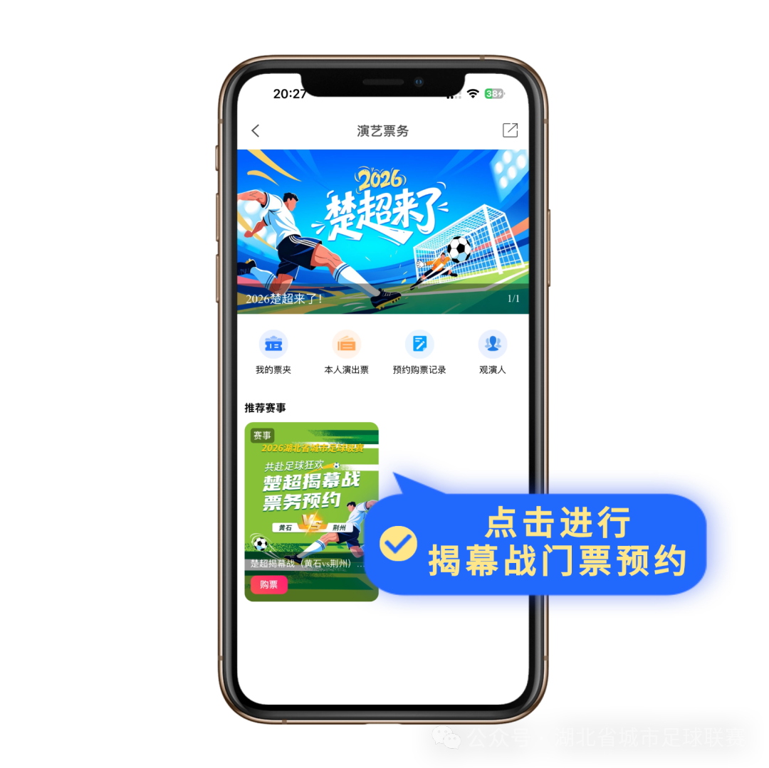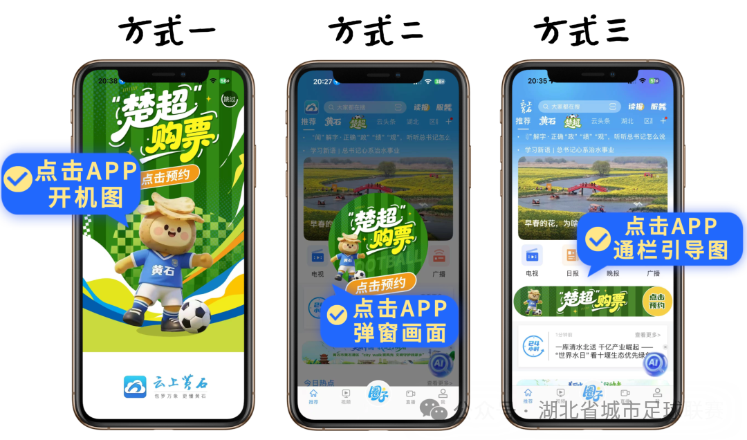 进入“云上黄石”“楚超”揭幕战票务通道进行预约抢票。