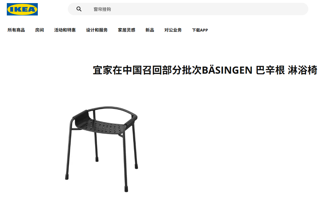 青报君获悉,近日,宜家官网发布最新召回信息,在中国召回部分批次BÄSINGEN巴辛根淋浴椅。