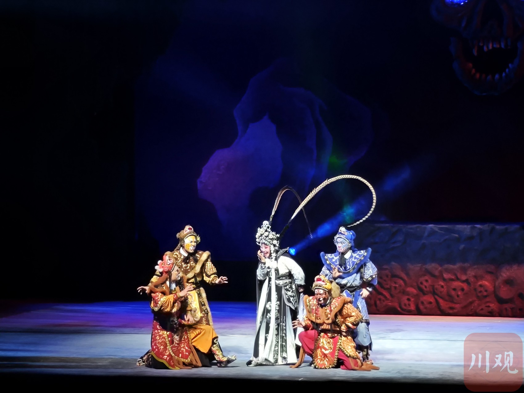 值得一提的是,本轮演出是《三打白骨精》的成都返场演出,优化了舞台视觉效果。例如,紧箍咒响起时孙悟空戒箍发光,具象化法咒痛感。2025年,在川渝联办的第十四届中国艺术节上,《三打白骨精》摘得文华奖,其参评演出的 “初舞台”,就是成都东安湖大剧院。3月25日,该剧还将在成都再演一场。