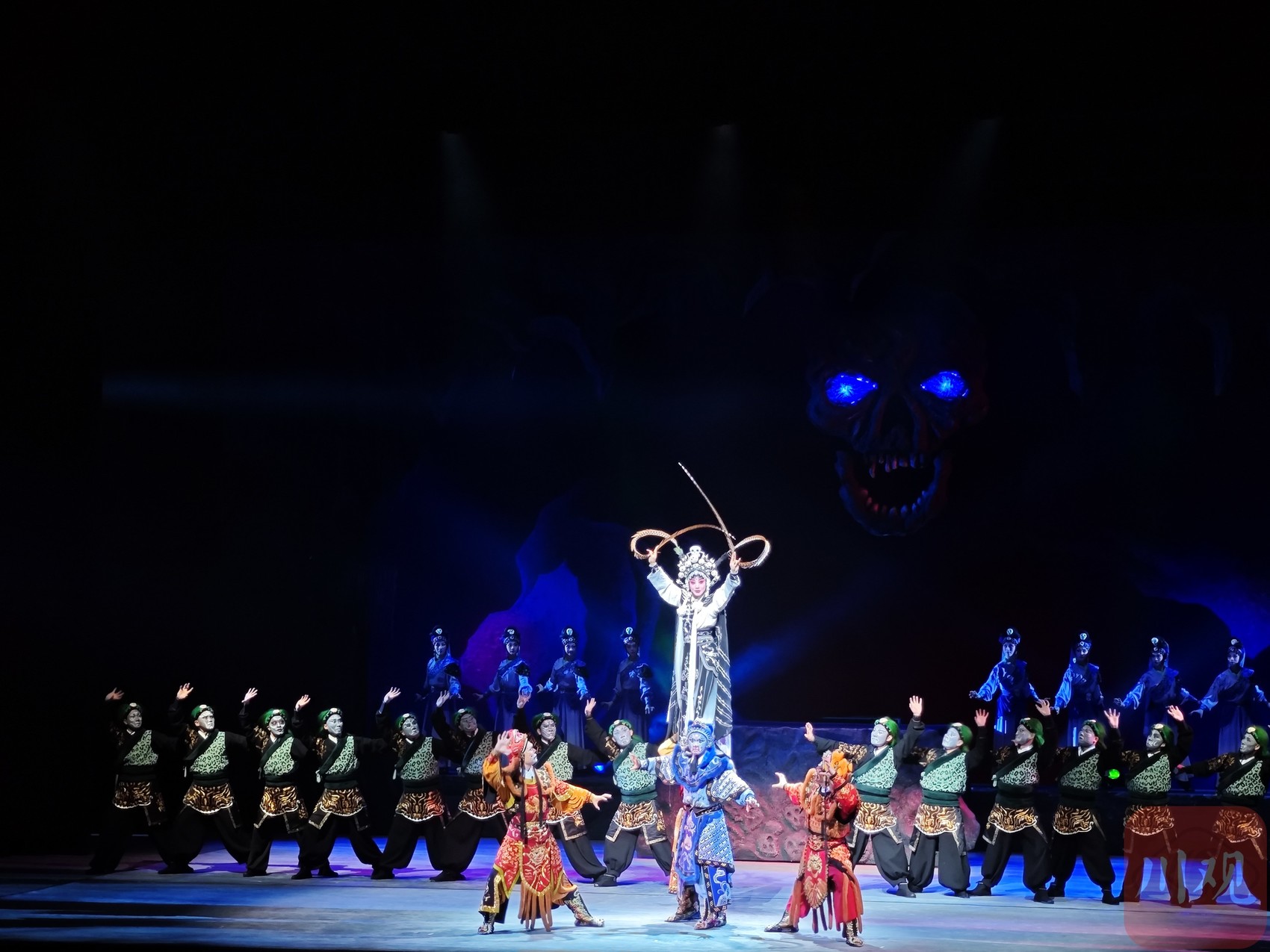 演出现场,翻滚跌扑、刀来棒往等场面生动,多次引发掌声雷动。瞬间变装等高难度的场面,将传统戏曲与现代化表达巧妙融合。白骨精一登场就连续变脸变装,凸显妖魔诡变。无人机“化身”小蜜蜂让孙悟空“七十二变”的法力趣味呈现,颇具观赏性的传统技艺与现代技术手段融合,让经典故事焕发新活力。