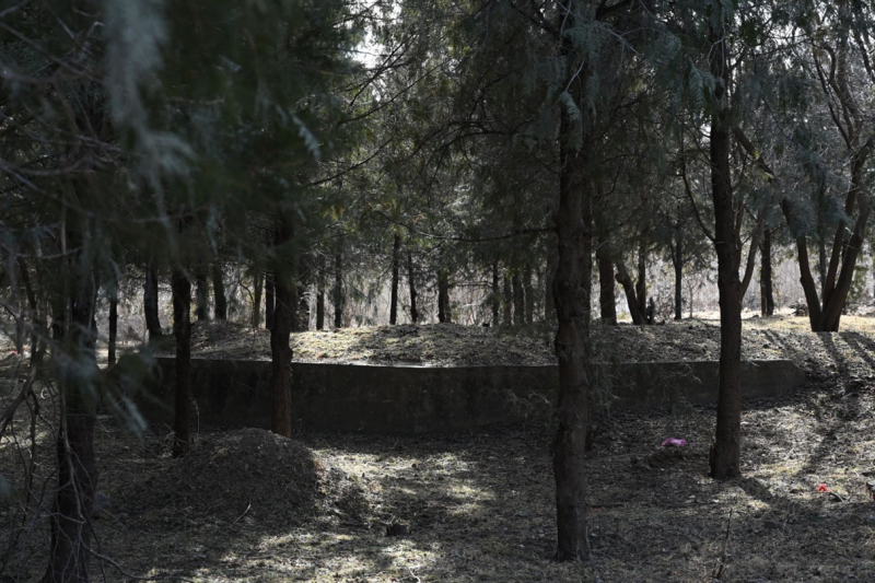 近日,北青报记者跟随王嵬,来到丰台区张家坟村北部一片丘陵坡,这里位置偏僻、人迹罕至。王嵬对照1945年的航拍照片,基本确定了铁路和站台的位置,但未能发现任何建筑遗迹,而在推断站台位置的附近,一座五孔桥引起了他的注意。