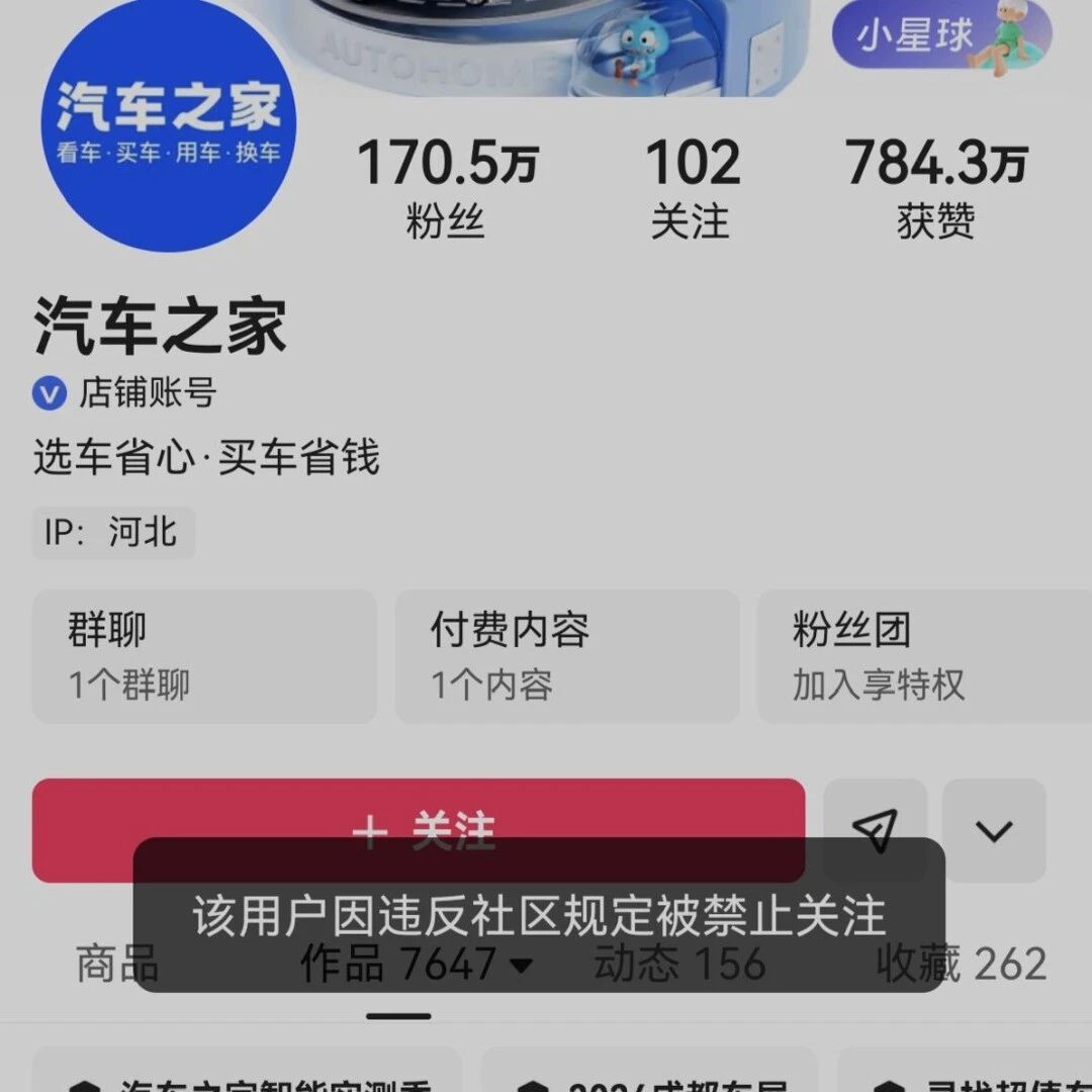 另外,“汽车之家”的抖音、快手、B站等账号均被禁止关注,有平台提示原因显示为“账号异常”或“违反社区规定”。视频平台最后更新日期在1月23日。