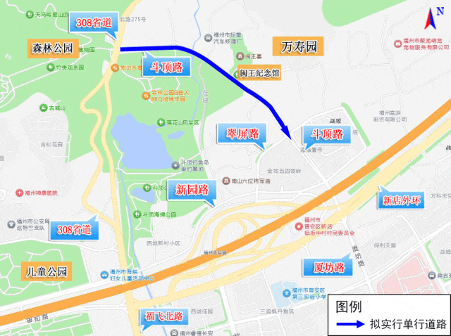 (一)斗顶路(西起308省道斗顶路口,东至翠屏路斗顶路口)实行机动车由北往南单向通行。