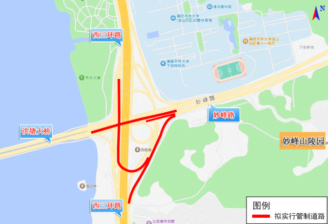 (三)洪塘互通西往东直行往妙峰路方向道路禁止机动车(除公交车外)通行。