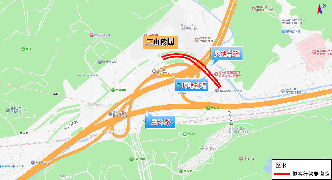 (一)三环路辅道凤池村道口路段禁止机动车(除公交车外)通行。