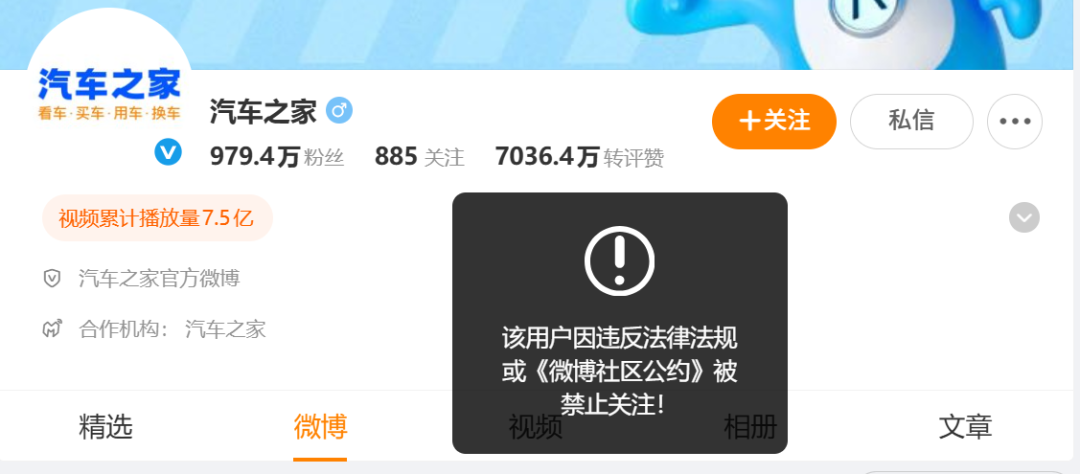 24日下午,南都记者查询发现,“汽车之家”多个社交平台官方账号显示无法正常关注,其中有平台注明系“该用户因违反社区规定被禁止关注”。这些账号粉丝数从数十万到数百万不等。记者咨询账号客服人员,暂无回应。此外,“太平洋汽车”多个账号也被禁止关注。
