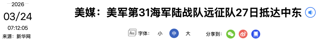 美媒:美军第31海军陆战队远征队27日抵达中东