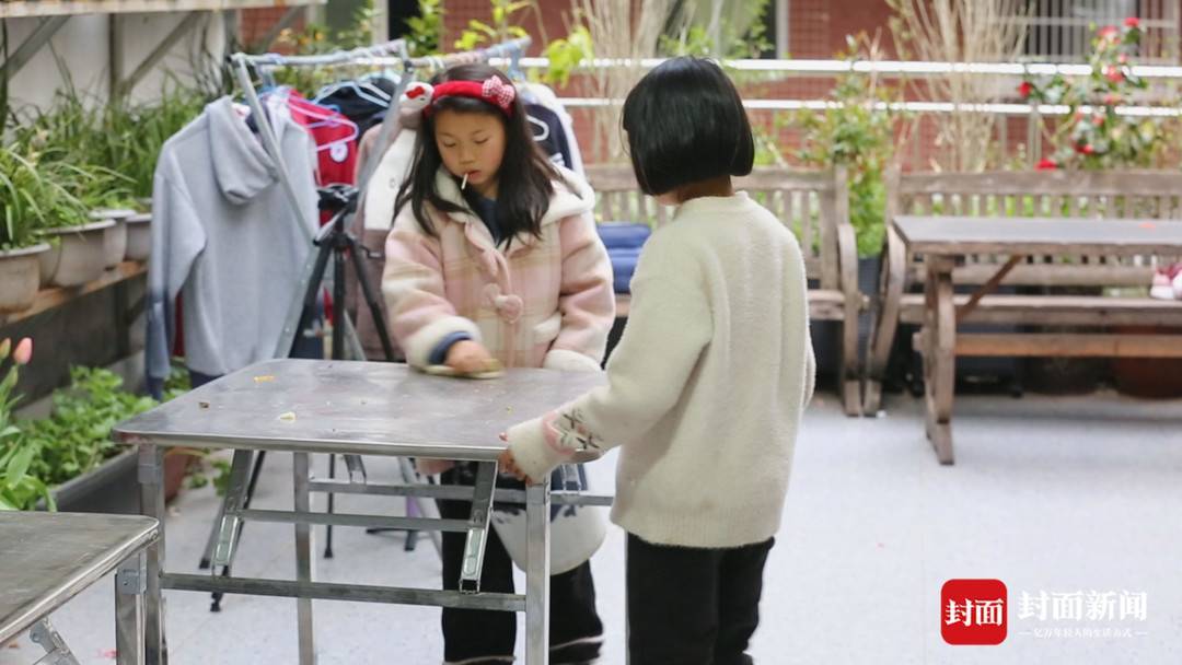饭后孩子们会主动帮张蓉和陈果收拾家务。