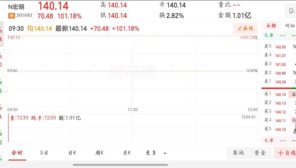 3月25日9时25分,成都宏明电子股份有限公司(下称宏明电子)在深交所敲钟上市,正式登陆创业板,成为2026年四川省首家A股上市公司。当天开盘涨幅即达到101.18%,股价飙升至140.14元/股。