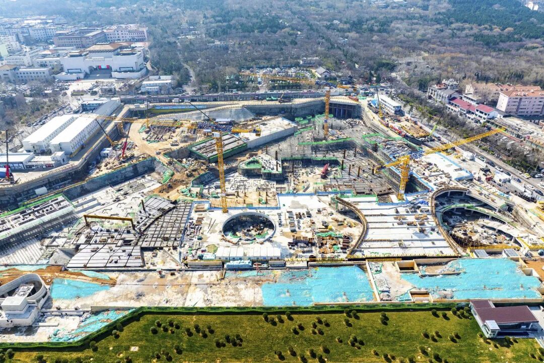在经十路以南、千佛山景区北侧,济南轨道交通千佛山站TOD综合开发项目现场,大型机械往来穿梭,工人们在绑扎钢筋、浇筑混凝土,一片繁忙景象。作为济南首个轨道交通地下TOD综合体,该项目正抢抓施工黄金期,全力推进主体结构施工。