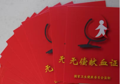 当鲜红的无偿献血证