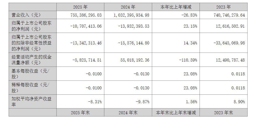 营业收入出现明显下滑的华塑控股(000509),2025年净利润延续亏损状态。好的是,亏损金额有所减少。