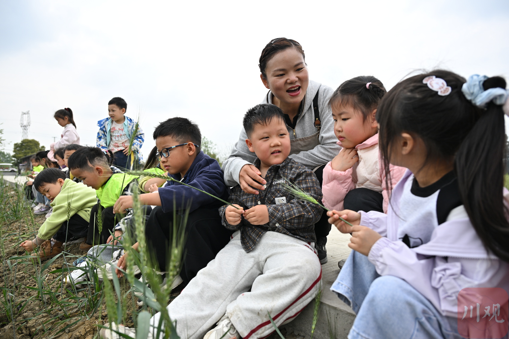 肖婷为来村研学的幼儿园孩子们介绍农作物。