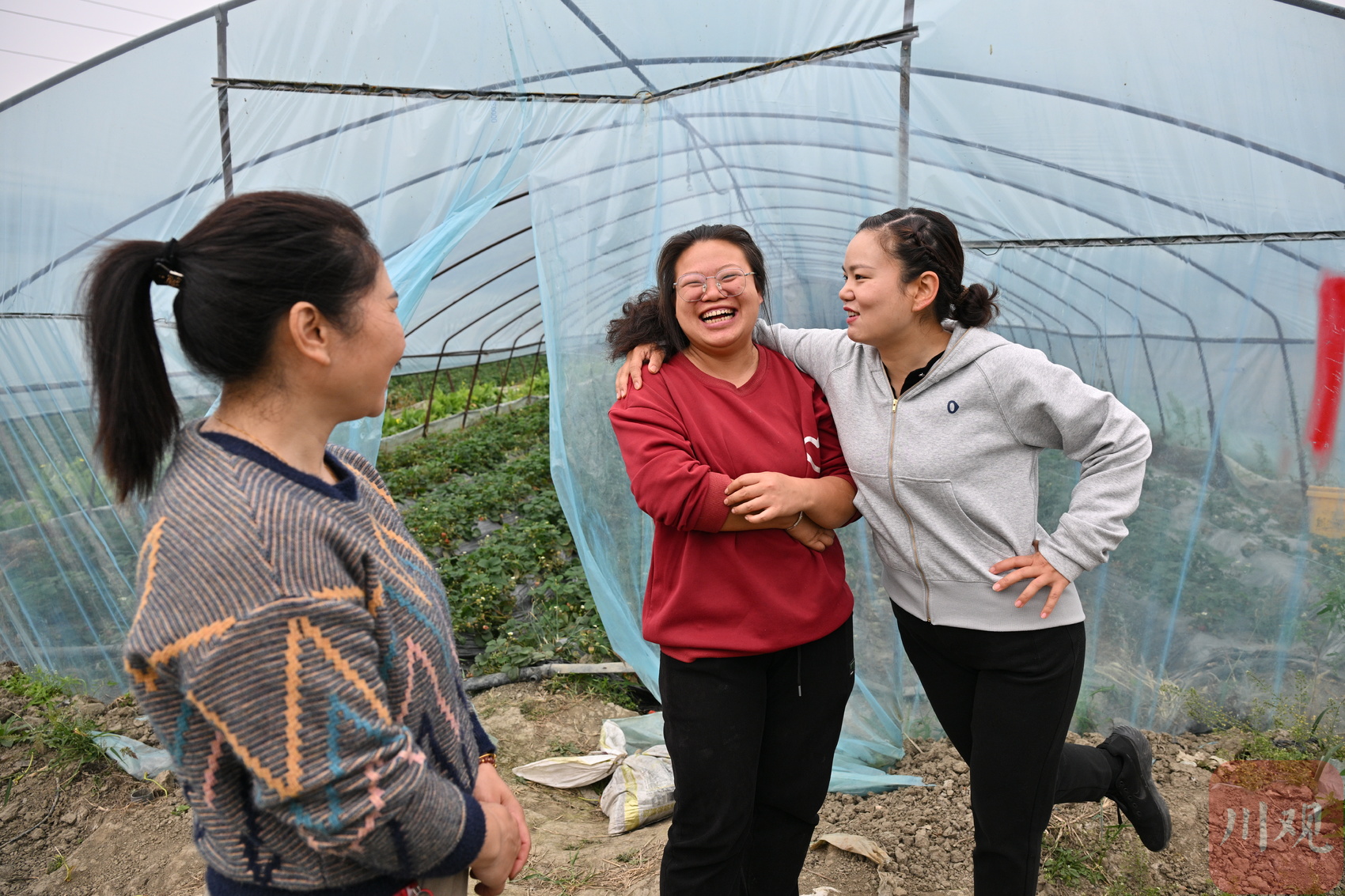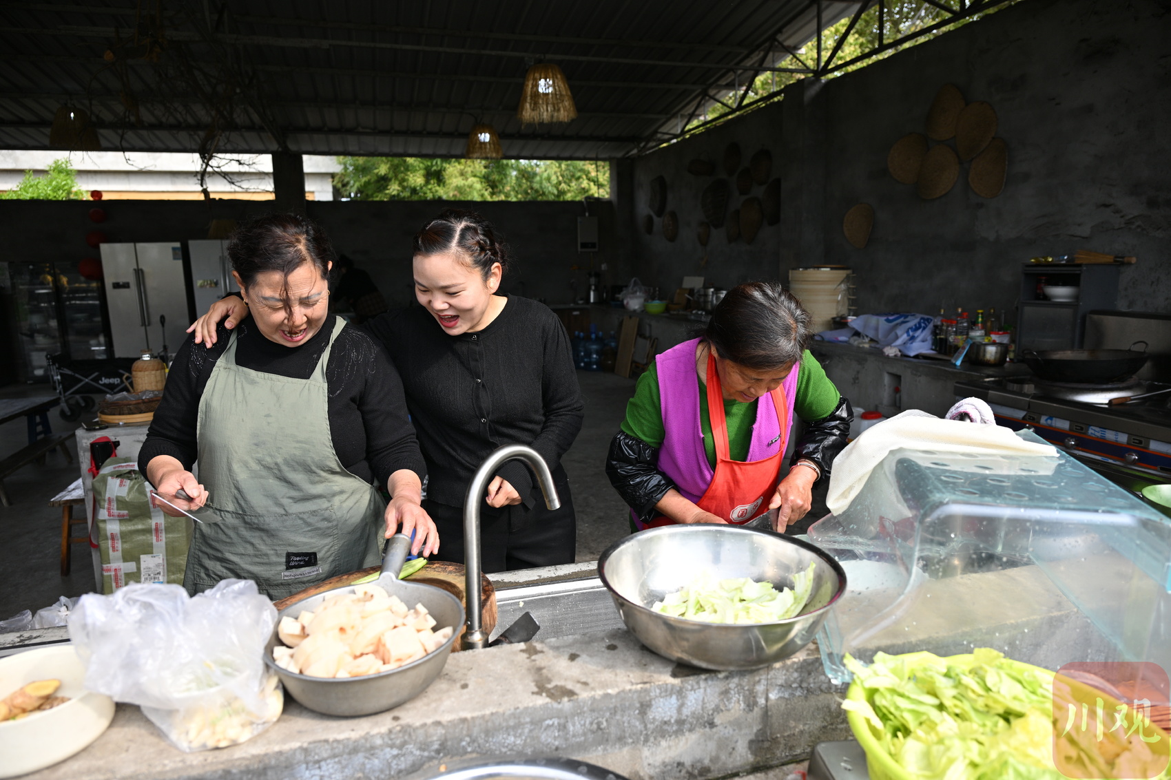 肖婷(中)让当地群众在家门口灵活就业,通过双手增收致富。