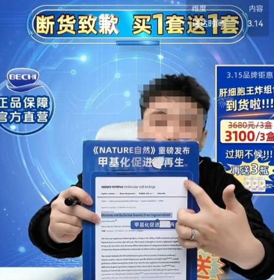 主播宣称的《自然》杂志研究结论(直播间截图)