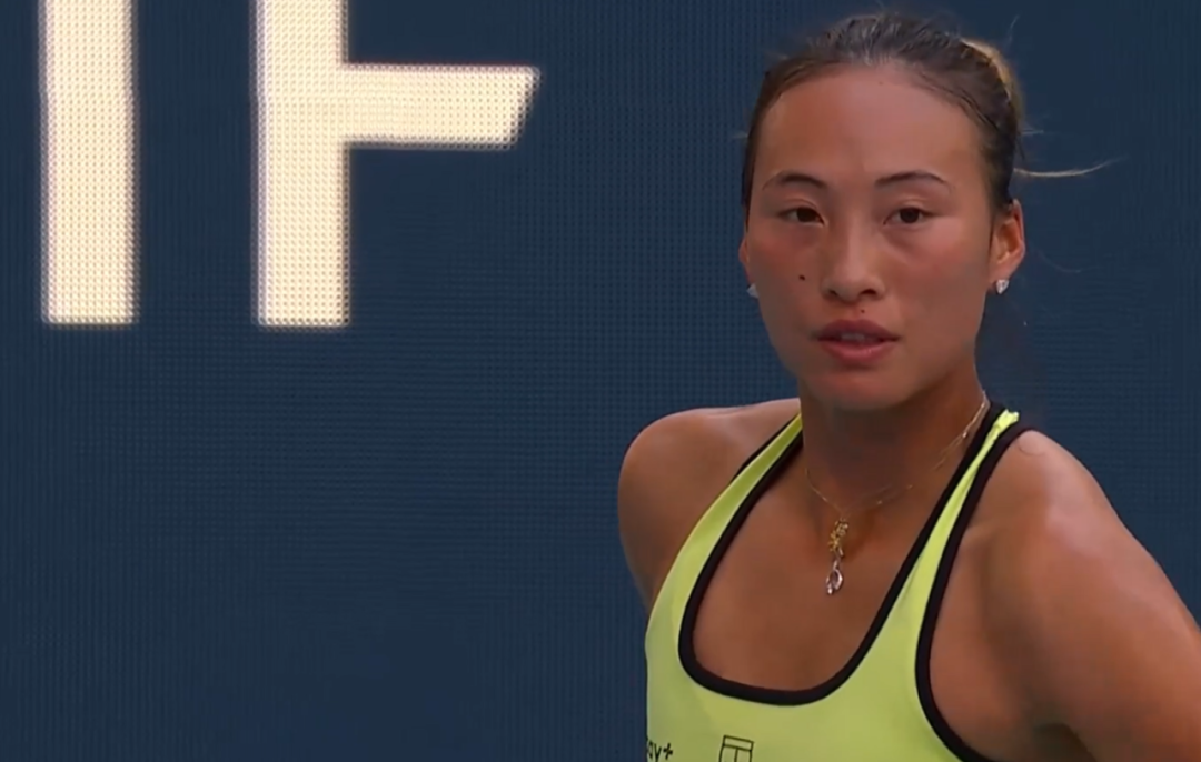 首盘,郑钦文相对慢热,一发成功率只有34%,远低于萨巴伦卡的65%,这让她局面被动。萨巴伦卡则从开场起就打得十分暴力,两度破发了郑钦文的发球局,把比分带到5-1。盘末,郑钦文虽然破掉了萨巴伦卡的一个发球胜盘局,但仍以3-6失掉首盘。