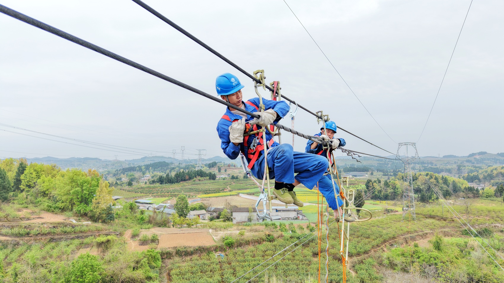 3月23日,在位于德阳市罗江区白马关镇的220千伏谭万二线检修现场,国网德阳供电公司作业人员正在开展“三跨”段导线预绞丝安装、地线后备线夹补强、绝缘子防护装置安装等工作,为迎峰度夏期间输电线路安全稳定运行筑牢坚实基础。