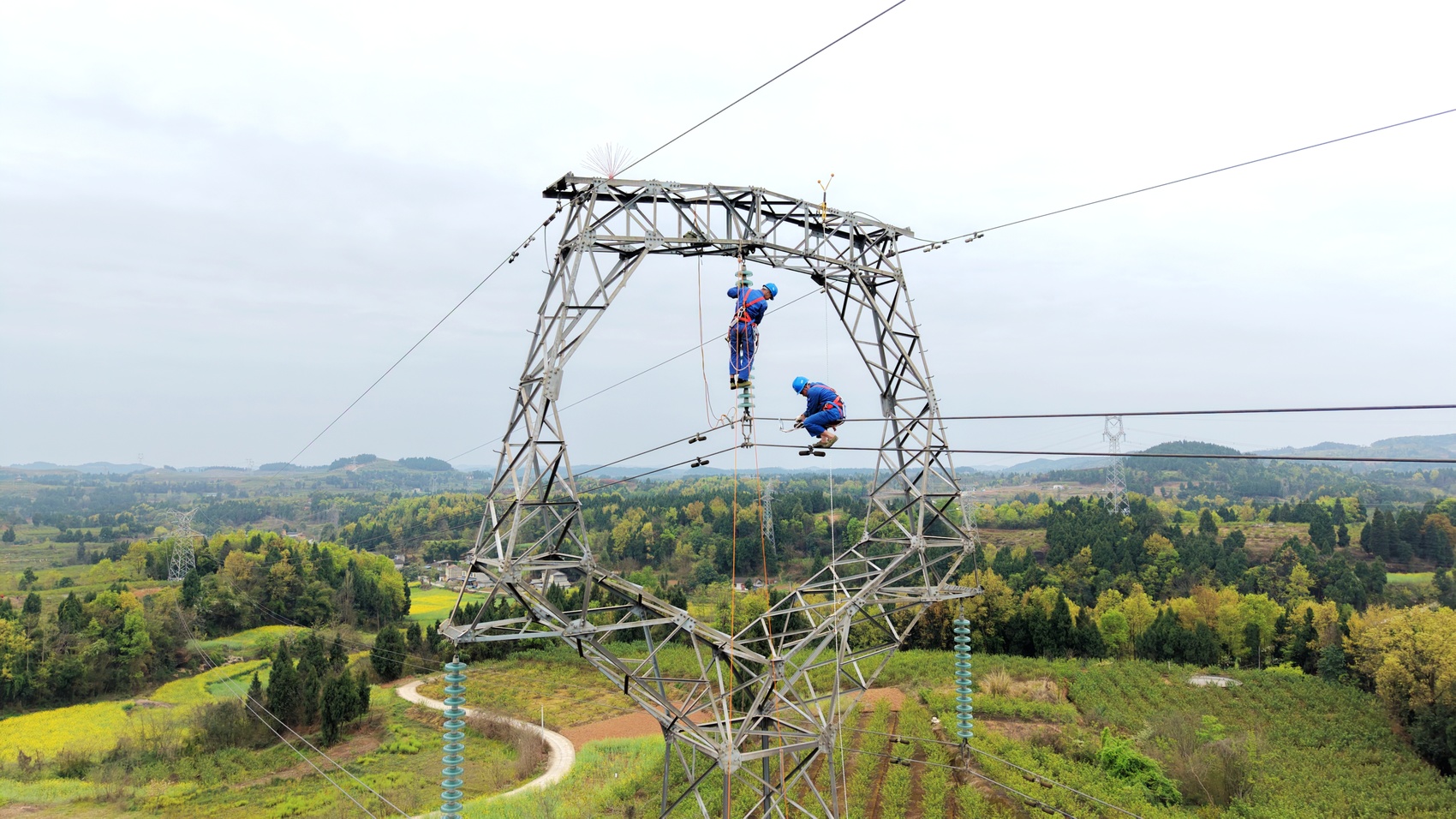 “以前登塔要一步一步交替使用安全带,费时又费力。现在有了无人机悬挂好的攀爬绳,我们攀登铁塔既省时又安全还节省体力。”魏才学深有感触。此次作业中,国网德阳供电公司采用“无人机悬挂攀爬绳+人工登塔作业”模式,有效提升登塔作业效率。