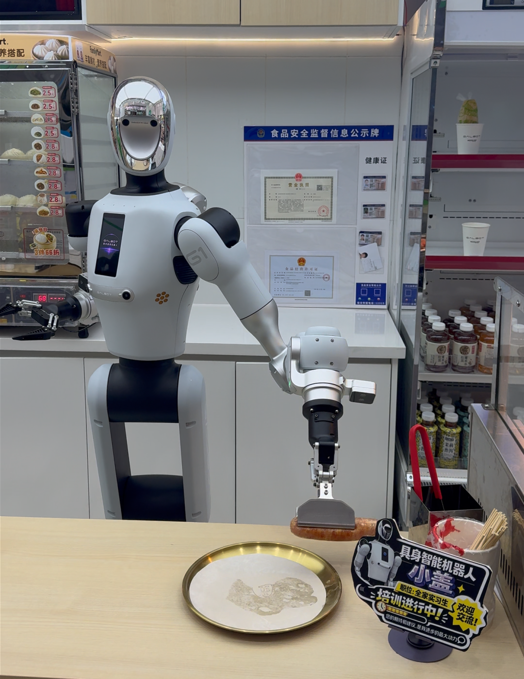 数据基建的不断完善,正加速推动具身智能从舞台演示走向真实场景应用。银河通用打造的“银河太空舱”智慧零售解决方案,已在全国20多个城市的核心商圈、景区落地超100个点位。这种最小仅需16平方米的智能零售空间,由机器人全流程自主运营,可完成语音接待、点单支付、商品抓取交付、货架盘点补货等全环节服务,实现长时间无人值守稳定运行。这不仅让具身智能从科技头条融入了城市烟火,更在持续运营中积累了海量真实场景交互数据,形成“场景应用-数据回流-模型优化”的正向飞轮。