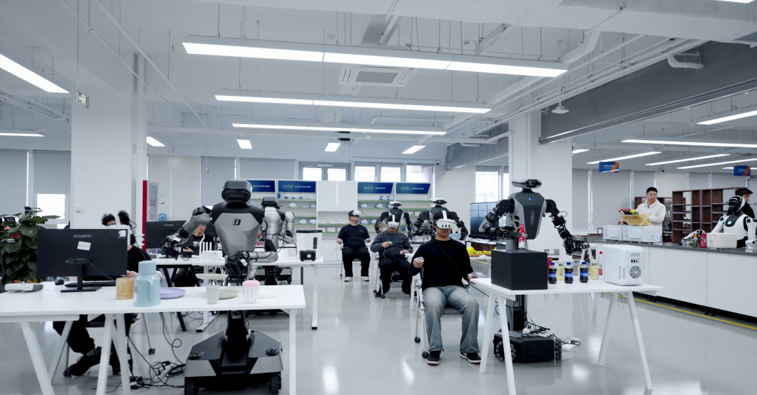 北京人形机器人创新中心具身智能机器人数据与训练基地一期,工作人员正在训练并采集数据。受访者供图