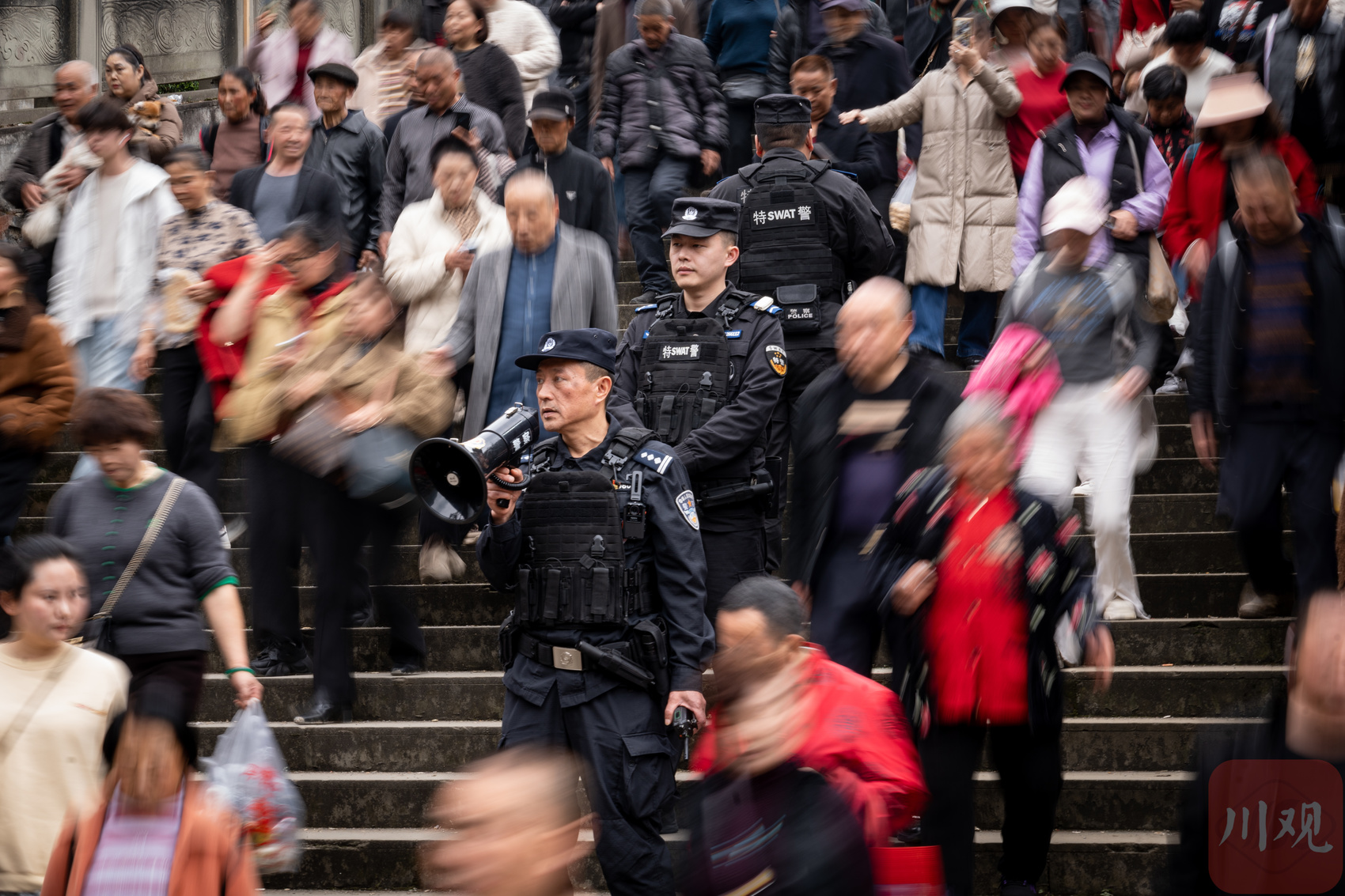 民警在太平桥上维护活动秩序。